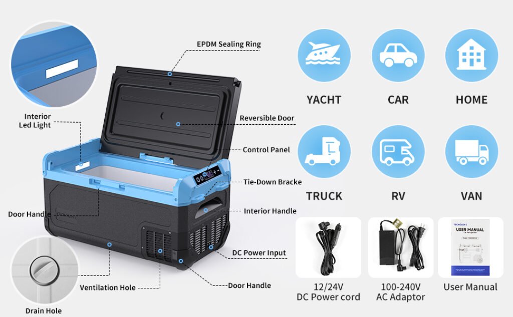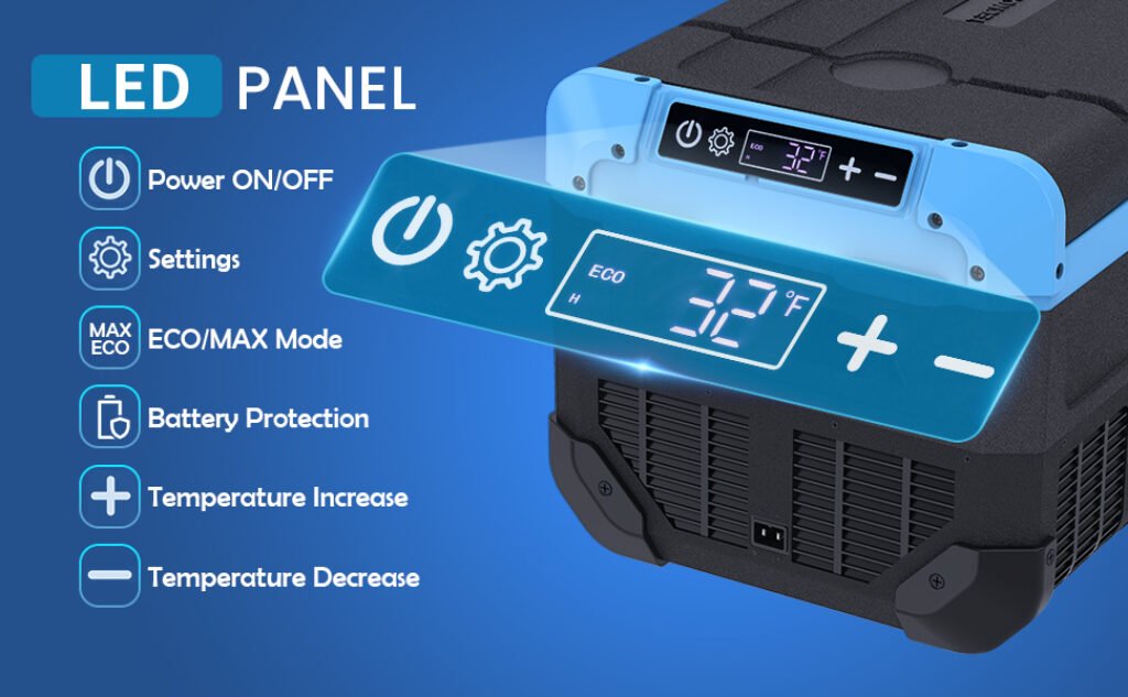 [Super Fast Cooling] Powerful compressor with new direct-cooling technology, featuring a Blow Expansion Evaporator with no partitions. Aerospace aluminum provides faster temperature conduction, speeding up cooling and doubling the lifespan. It cools from 68℉ to 32℉ in 15 minutes, and from 68℉ to -4℉ in 50 minutes. 360-degree uniform cooling, a 45mm thick foam layer, and durable composite insulation layer. No ice needed for perfect refrigeration and freezing.